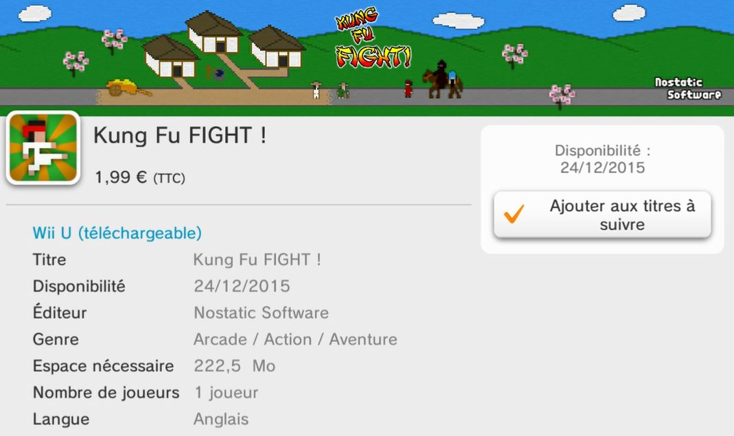 Nostatic Software is planning some of its first games for Wii U. “Kung Fu FIGHT!”, a game that previous hit a number of platforms, should be coming to the eShop soon.