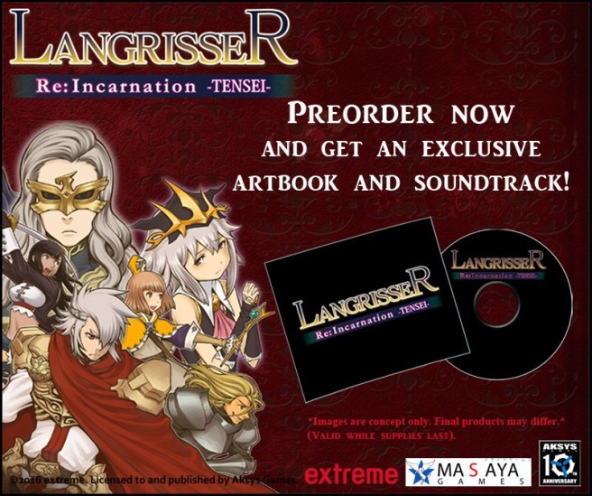 Aksys Games has announced exclusive pre-order bonuses for Langrisser Re:Incarnation -TENSEI- on Amazon. If you reserve the game, you’ll receive an art book and soundtrack. Pre-orders can be placed here.