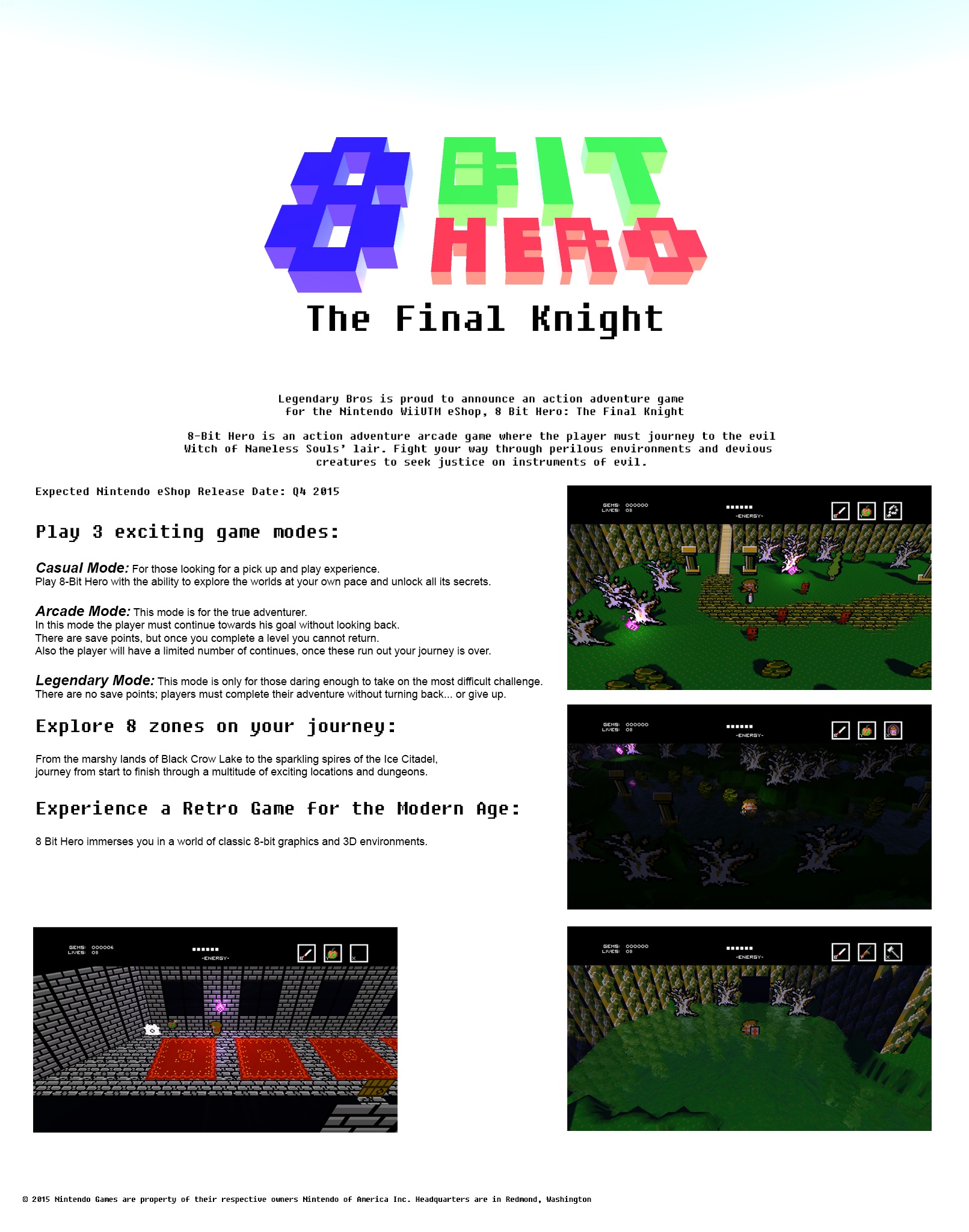 Legendary Bros has announced that its new Wii U game, 8 Bit Hero: The Final Knight, is coming to the Wii U eShop in Q4 of this year.