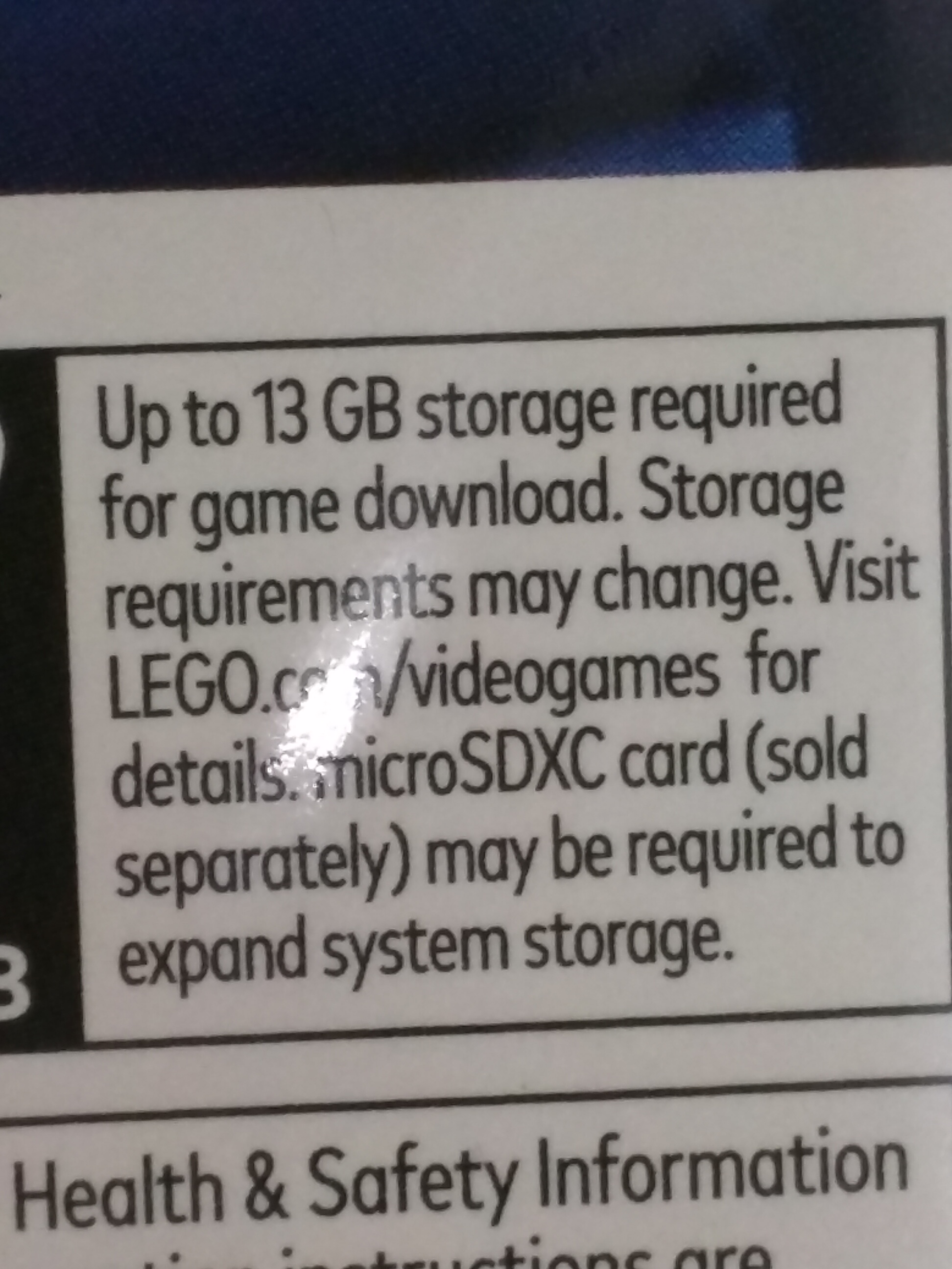 LEGO City Undercover’s packaging mentions needing up to 13GB of space for “game download” on Switch