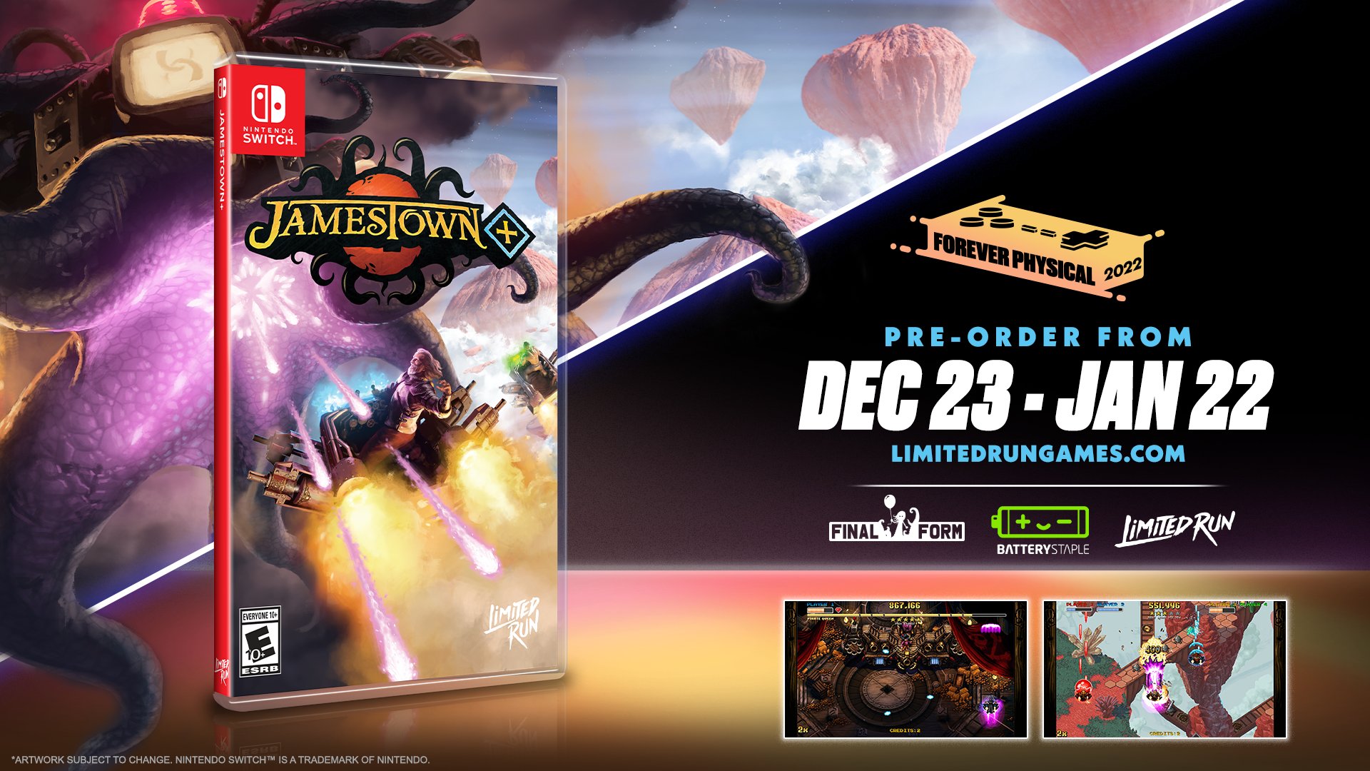 Limited Run Games announced today that Jamestown+, the top-down four-player retro shooter from Final Form Games, is getting a physical release on Switch. Only a standard edition will be available.