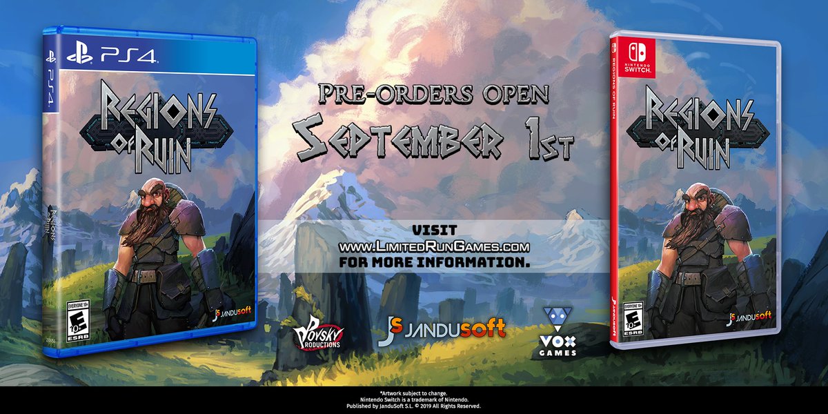 Pre-orders for Regions of Ruin open on September 1, with a reservation window of four weeks. You’ll be able to pick up a copy through Limited Run Games’ website here.