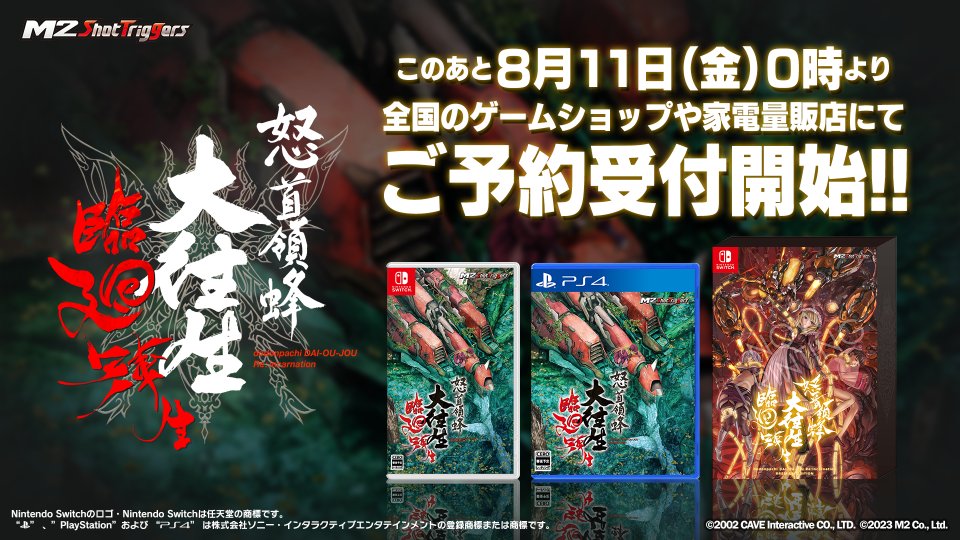 Original (8/10): M2 will bring DoDonPachi Blissful Death Re:Incarnation to Switch, the company revealed today. A release is planned for December 7, 2023 in Japan.