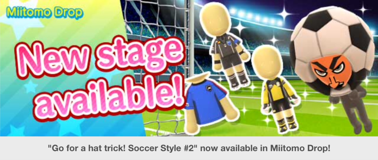 Miitomo has been updated with new content once again. Players can nab some new items in the latest Miitomo Drop stage, “Go for a hat trick! Soccer Style #2”.