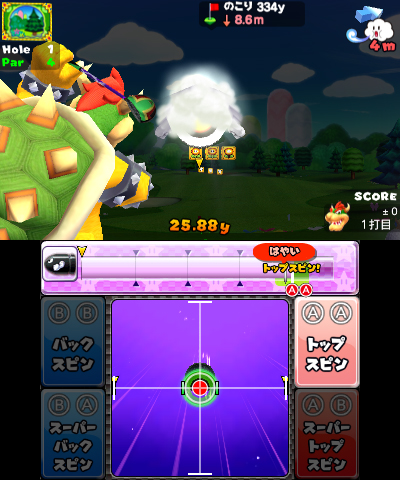 REDMOND, Wash.–(BUSINESS WIRE)–When Mario Golf: World Tour launches for the Nintendo 3DS system on May 2, it will feature robust regional and worldwide online tournaments hosted by Nintendo, as well as custom tournaments that can be created by players. All players who own the game and have a wireless broadband Internet connection can enter the Nintendo-hosted tournaments by simply checking their SpotPass notifications for upcoming and available tournaments, playing in the event and uploading their scores before the event deadline. Players can even monitor their progress by checking the leaderboards to see where they stand. Tournaments can be accessed in Mario Golf mode or using one of the entry machines in the new Castle Club. There will be a variety of different tournaments, ranging from larger competitions to smaller-scale events like longest-drive challenges, coin-gathering challenges or even speed golf.