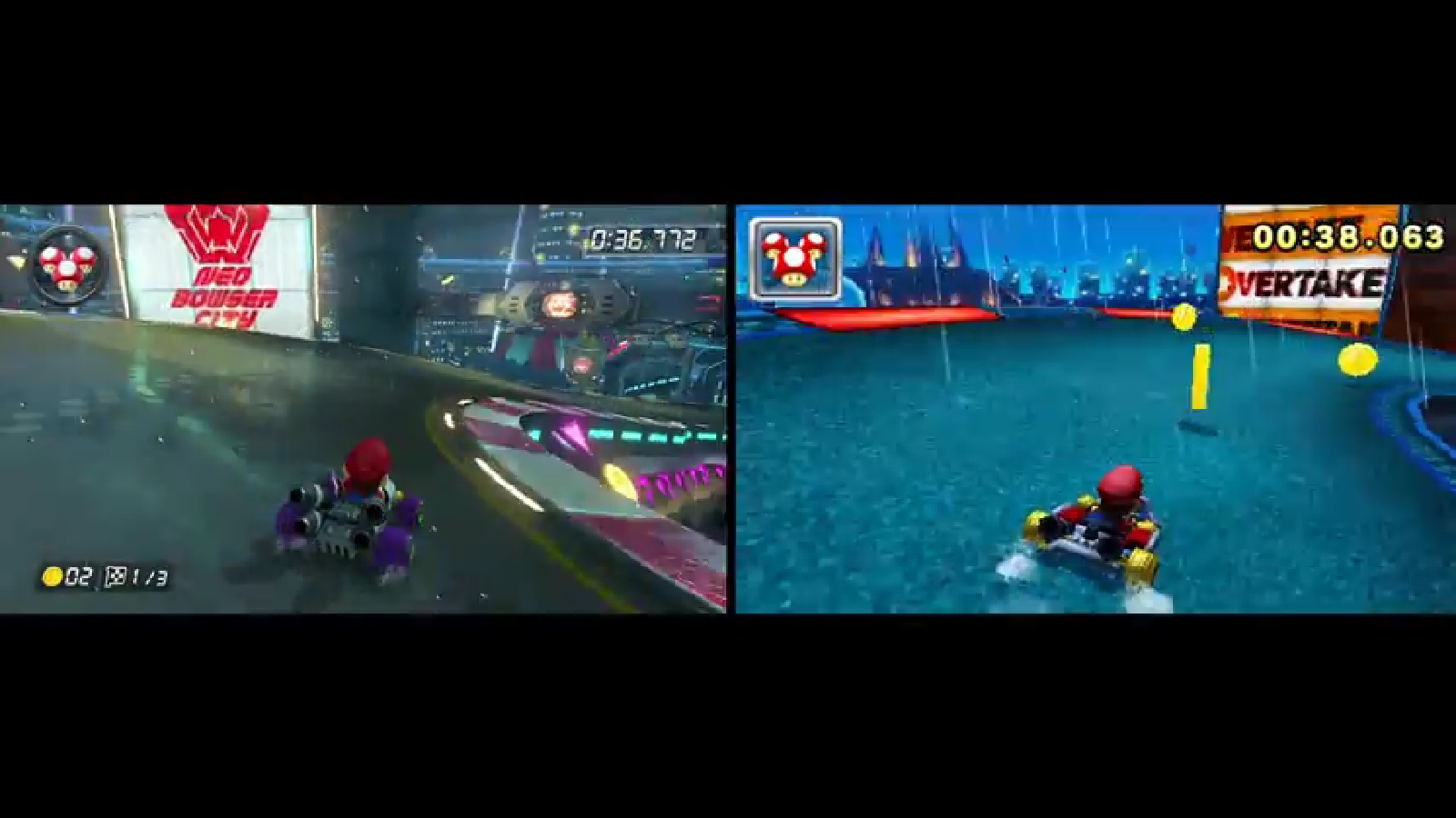 GameXplain has put together a video comparing the Neo Bowser City track in Mario Kart 8 and Mario Kart 7. You can watch it below.