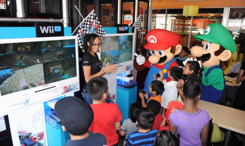In this photo provided by Nintendo of America, kids receive Mario Kart 8 themed Happy Meal toys from Mario and Luigi at McDonald’s during a special event on July 12, 2014 in Los Angeles. Nintendo is celebrating the recently released Mario Kart 8 game for the Wii U console by partnering with McDonald’s nationwide to include themed toys in the Happy Meal program. The program began on July 4 and is available while supplies last in stores until July 31. (Photo by Nintendo of America/Bob Riha Jr.)