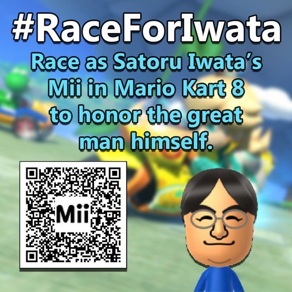 Nintendo fans have started a campaign to pay their respects to Satoru Iwata. Through the QR code above, you can obtain Iwata’s Mii on your Wii U console. People are using his Mii in Mario Kart 8 as a means of paying tribute to his memory.