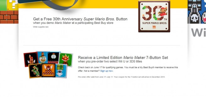 Best Buy will also be offering consumers a limited edition Mario Maker 7-button set. This will be available to those who pre-order two select Wii U/3DS titles (full list to be announced soon) between June 17 and July 7.