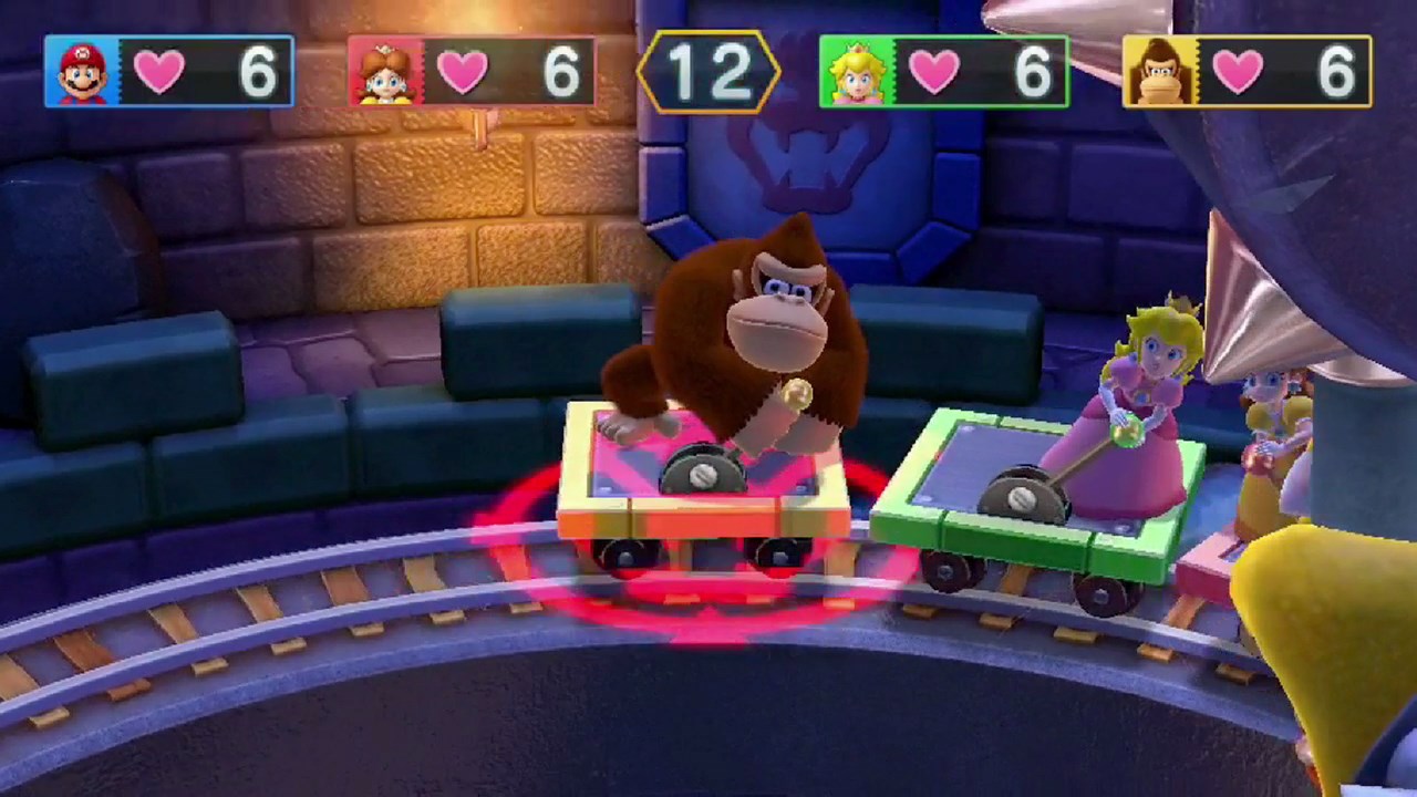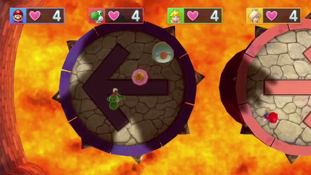 – Sinister Slots: Mario and friends are all running on a hamster wheel, Bowser can spin and stop it at odd intervals to throw off the other player’s timing so they run into stage hazards