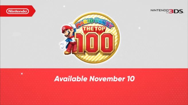 Mario Party: The Top 100 is due out for 3DS on November 10. It will feature mini-games from previous Mario Party home console games.