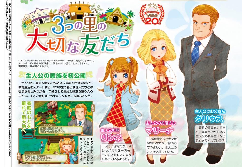 This week’s issue of Famitsu contains a four-page article on Story of Seasons: Good Friends of Three Villages. Much of the information was previously-known, but there are a few new details.