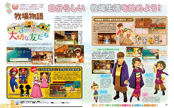 Preview images for the latest issue of Famitsu have revealed that the upcoming Story of Seasons: Good Friends of Three Villages will feature costumes from the Super Mario series, specifically Mario himself and Peach. We will have more detailed information for you once this week’s issue of Famitsu is out.