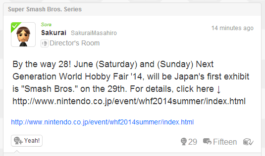 Along with today’s screenshot, Sakurai passed along the following message on Miiverse: