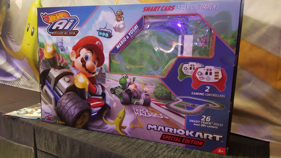 At Comic-Con last week, Mattel showed off a Mario Kart version of its Hot Wheels AI Intelligent Race System. It features a track that can keep Mario and co. on the road while players shoot virtual hazards at each other.