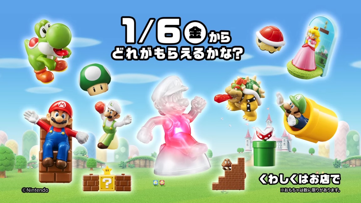 As we initially learned at the very end of November, a new wave of Mario toys will be offered at McDonald’s Japan in Happy Meals beginning on January 6. We now have a commercial for the promotion below.