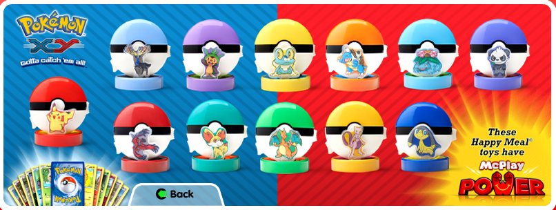 Nintendo must sure like McDonalds. After teaming up with the fast food restaurant to bring Mario toys to Japan and the UK, Pokemon X/Y toys are now coming to the United States. This new Happy Meal licensing deal includes a card and one of 12 toys from a selection including Pikachu, Venusaur, Charizard, Blastoise, Mewtwo, Chespin, Fennekin, Froakie, Helioptile, Pancham, Xerneas, and Yveltal.