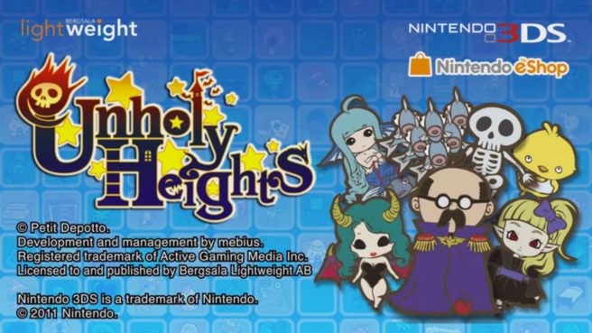 It was already clear that Unholy Heights would be launching on the European 3DS eShop tomorrow thanks to the weekly Nintendo Download PR. However, we now have confirmation that the game will be out in North America at the same time. It’ll cost $6.00 / €5.99.