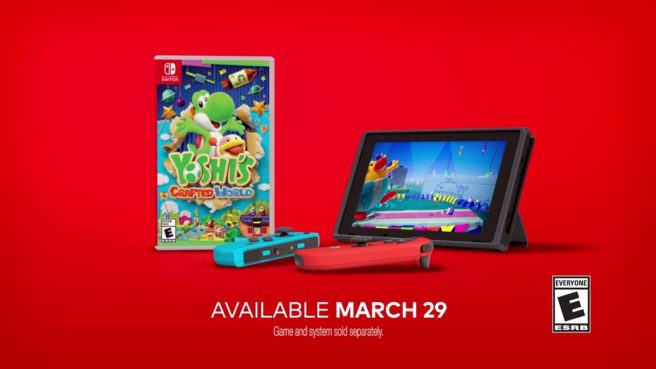 Yoshi’s Crafted World sold through 35.96% of its initial shipment. To compare this to recent entries in the series: Yoshi’s Woolly World, which released in July 2015 on Wii U, sold 31,000 units in its first week, while the semi-follow up on the 3DS, Poochy & Yoshi’s Woolly World, initially sold 40,000 units in that same timeframe. The sales of Switch, however, were down to 50,000 units (89.78% of the previous week), the lowest of the year. Media Create says this means there is no marked influence of the game on hardware sales.