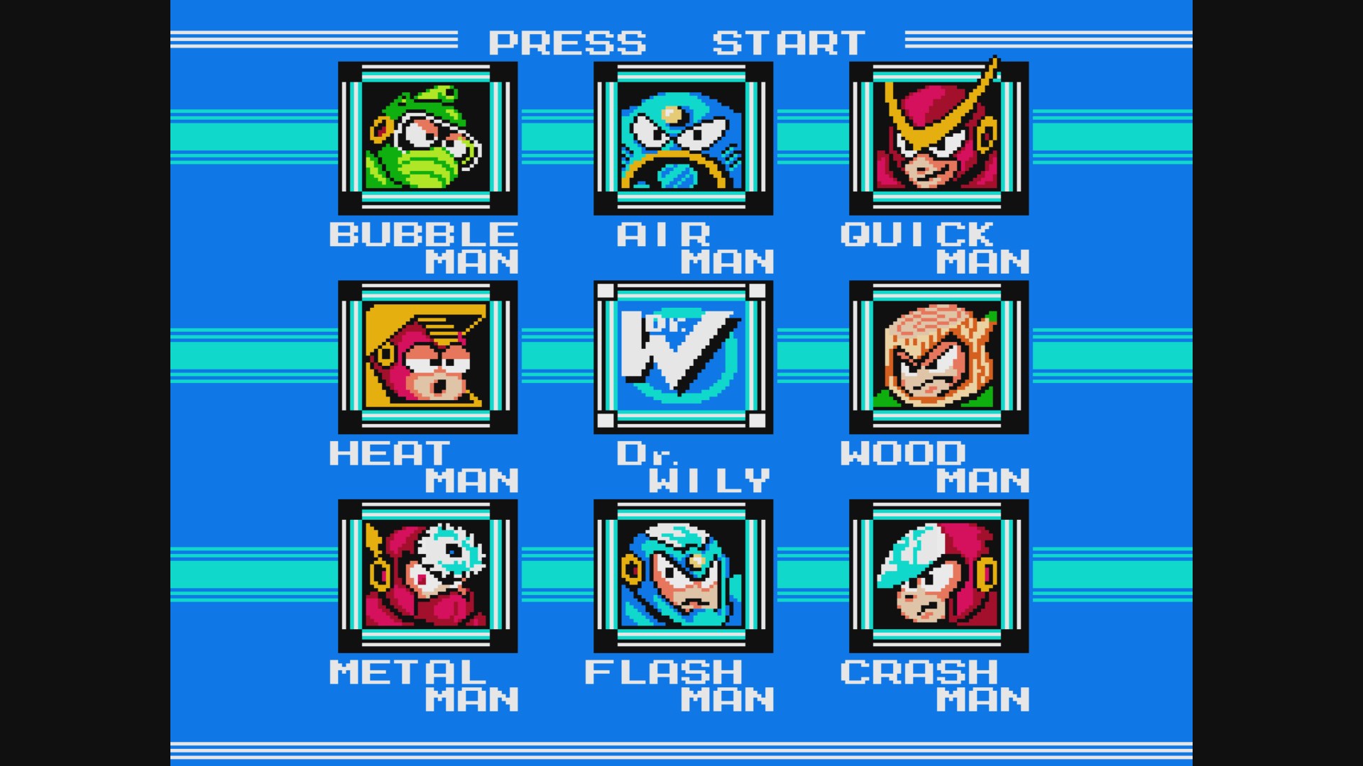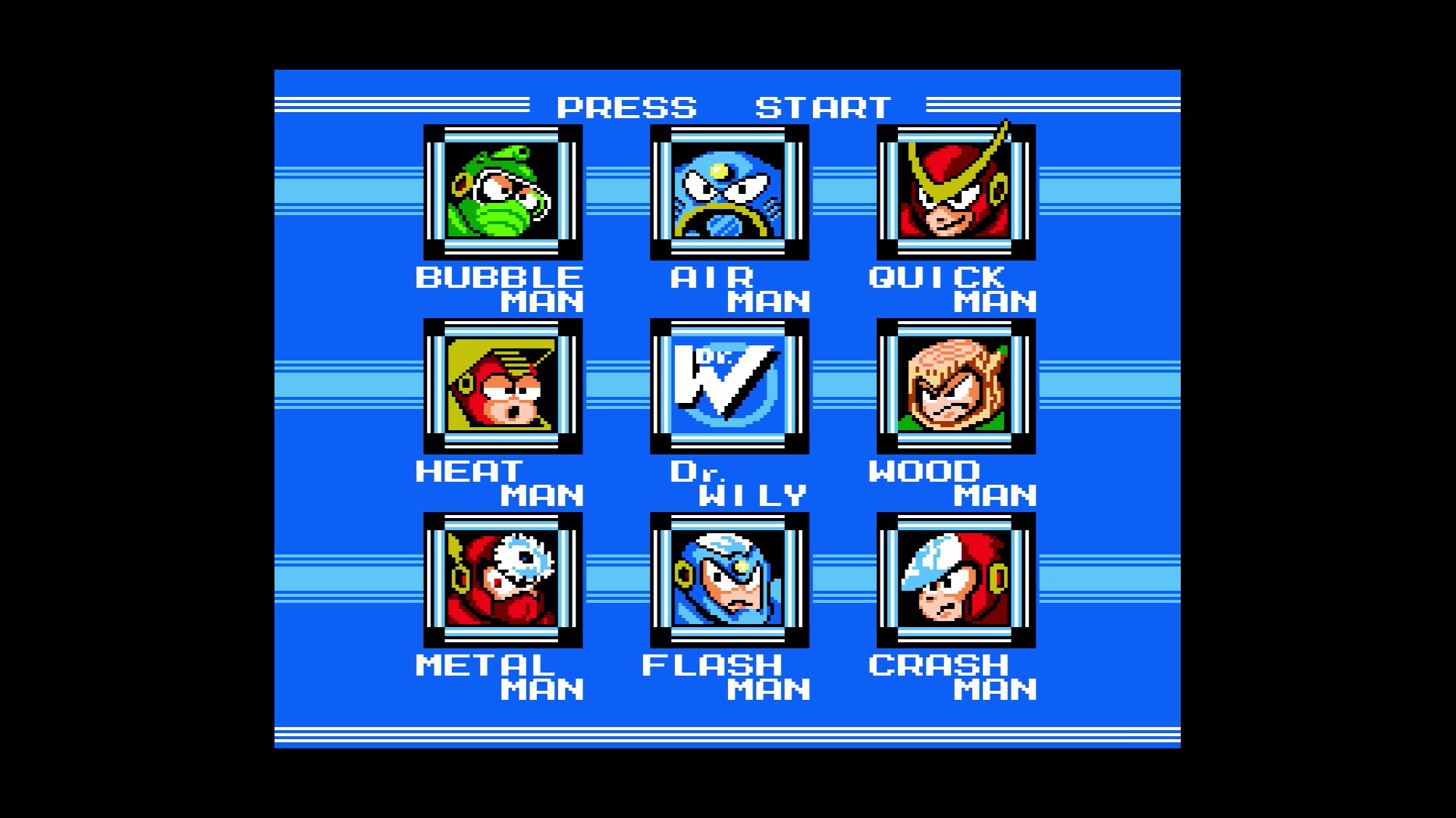 Borders: We showed this at E3 but didn’t post screenshots, so this may be the first time some of you see optional borders that will fill the sides of the screen. They’re themed for each Mega Man game! The top screen is in “Original” mode, while the bottom is “Full” – since the Original screen takes up less space, the more of the border is seen.