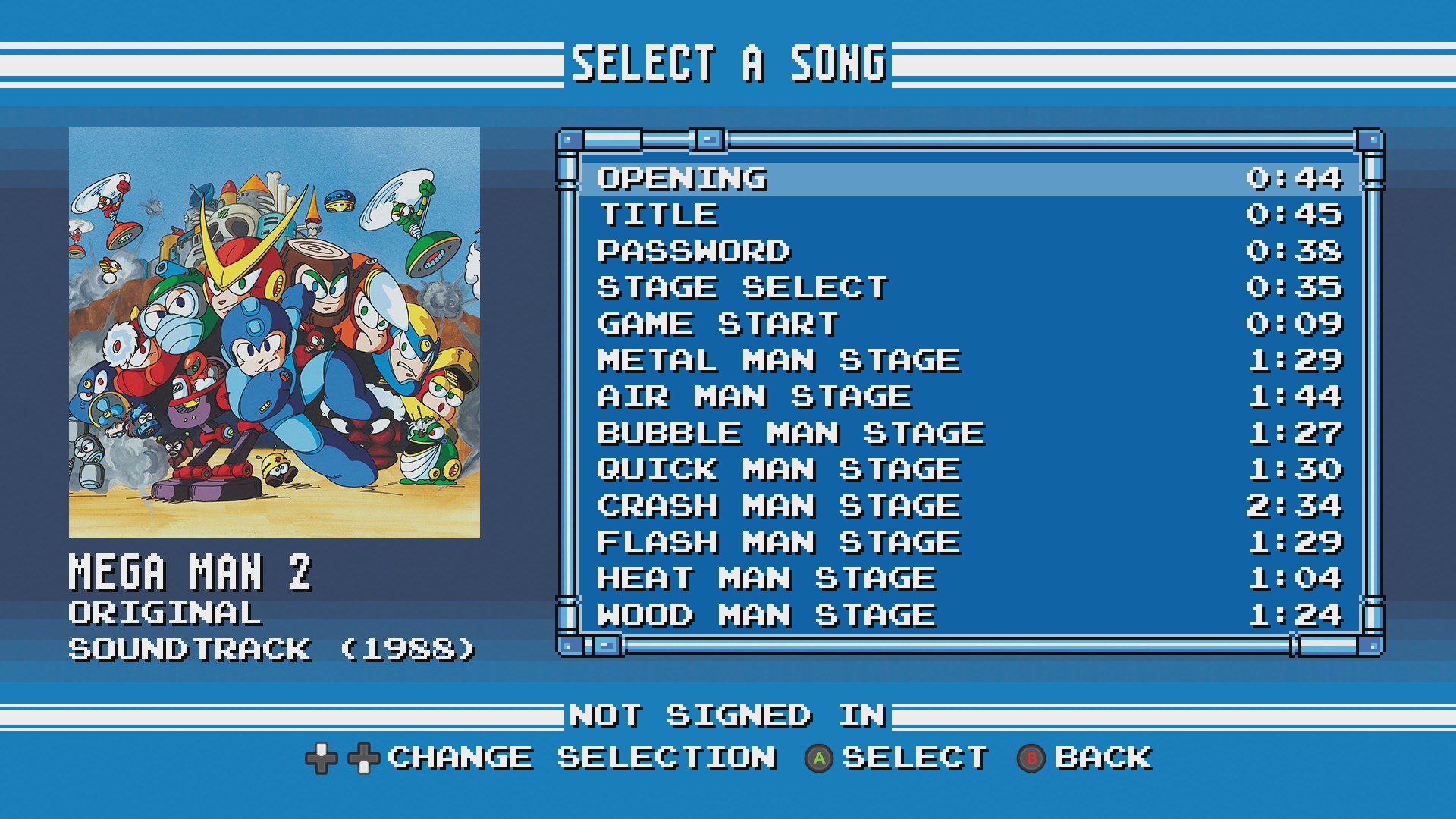 - Menu colors are based on the original Mega Man color coordinates from Capom’s old licensing manual