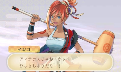 A demo of Megami Meguri was available at Tokyo Game Show 2016. When we started playing, Amaterasu greeted us in her human form, explaining what we are expected to do to raise the spirit, before converting to a chibi form.