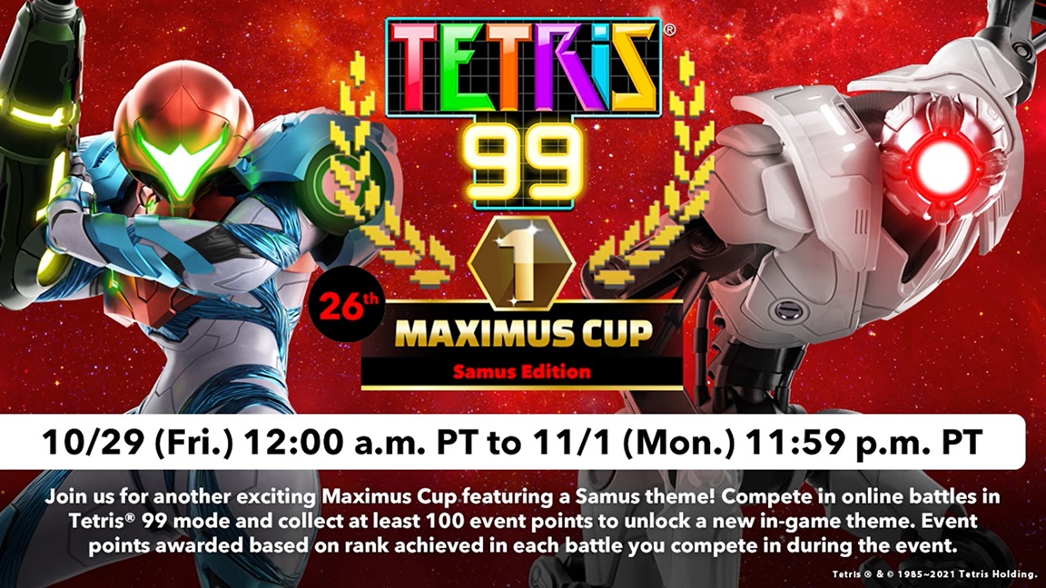 Tetris 99 will host its 26th Maximus Cup this week and will offer players a chance to earn a Metroid Dread theme, Nintendo has just announced.