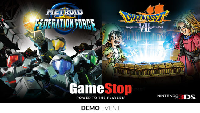 Select GameStop locations will be hosting a demo event for two 3DS titles on Saturday. The upcoming Dragon Quest VII and just-released Metroid Prime: Federation Force will be on display. Both can be played from 1 PM to 4 PM local time.