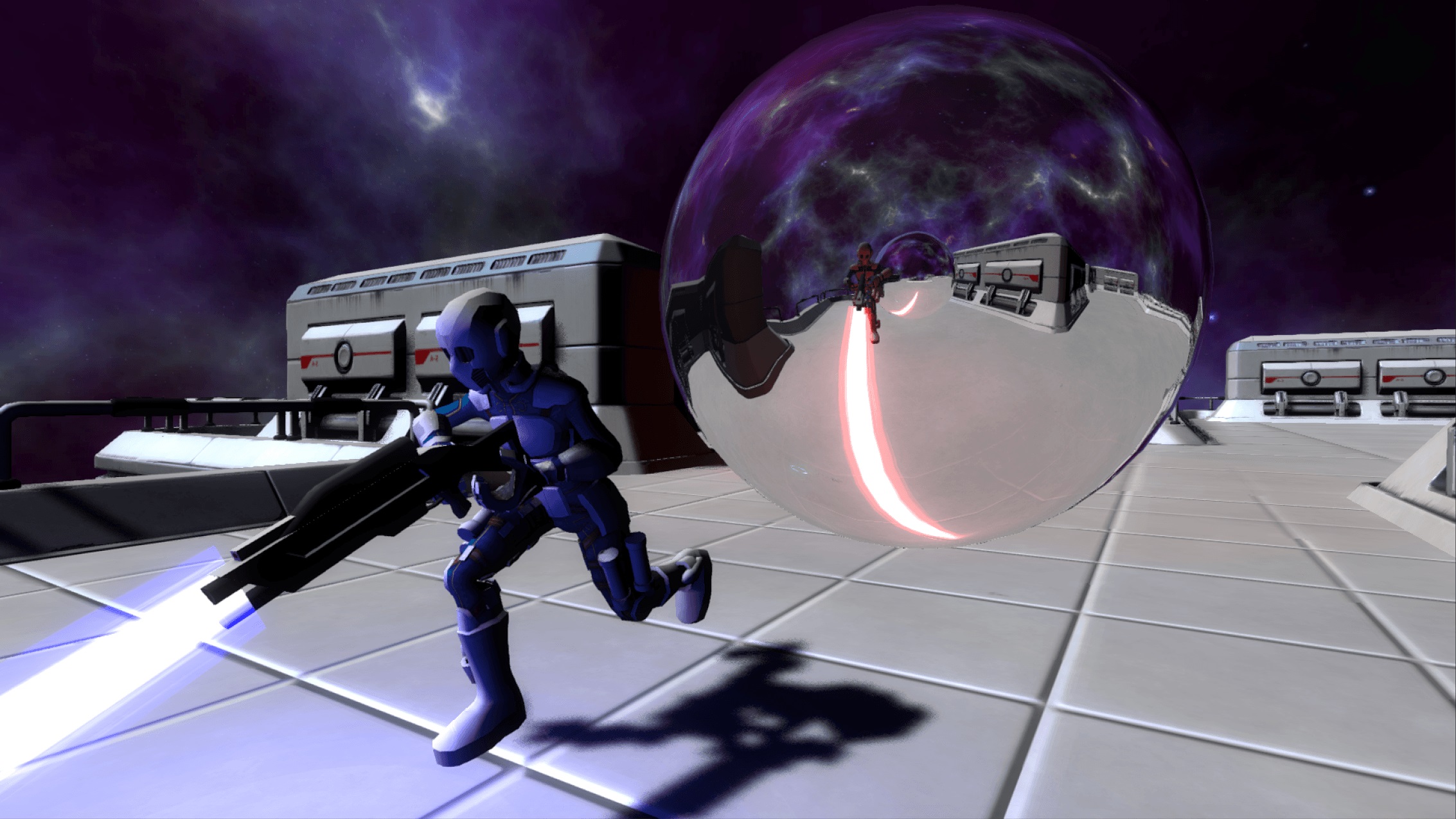 “Shooting your opponent opens up a wormhole which swaps your positions. Oust him off the edge in Drop Zone or dominate the map in Control Point. Sharpen your skills in Story Mode or go for gold in Soccer. Whatever your goal, be ever mindful of your spacetime…”