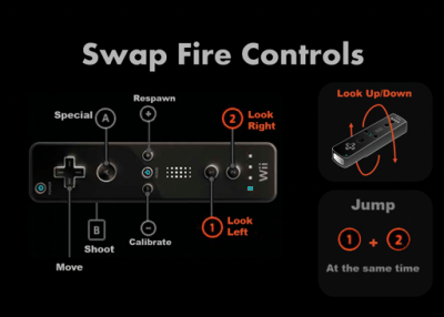 Swap Fire’s controls are certainly unique. The game only uses the Wii Remote, with players holding it horizontally.