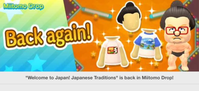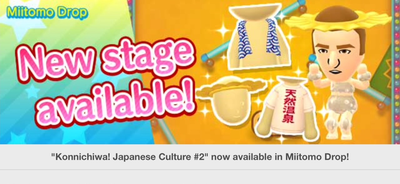 Miitomo has been updated with new content. Players can nab the latest items in the Miitomo Drop stage, “Konnichiwa! Japanese Culture #2”.