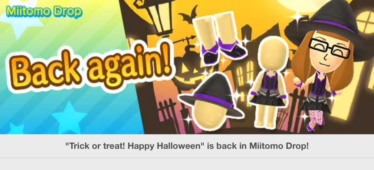 Miitomo – returning Miitomo Drop stage theme and new items (10/26/17)