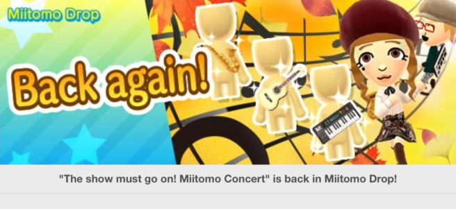 “The show must go on! Miitomo Concert” is the returning theme. The stages provide the following:
