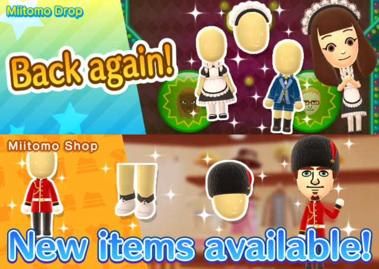 Miitomo – returning Miitomo Drop stage theme and new items (9/28/17)