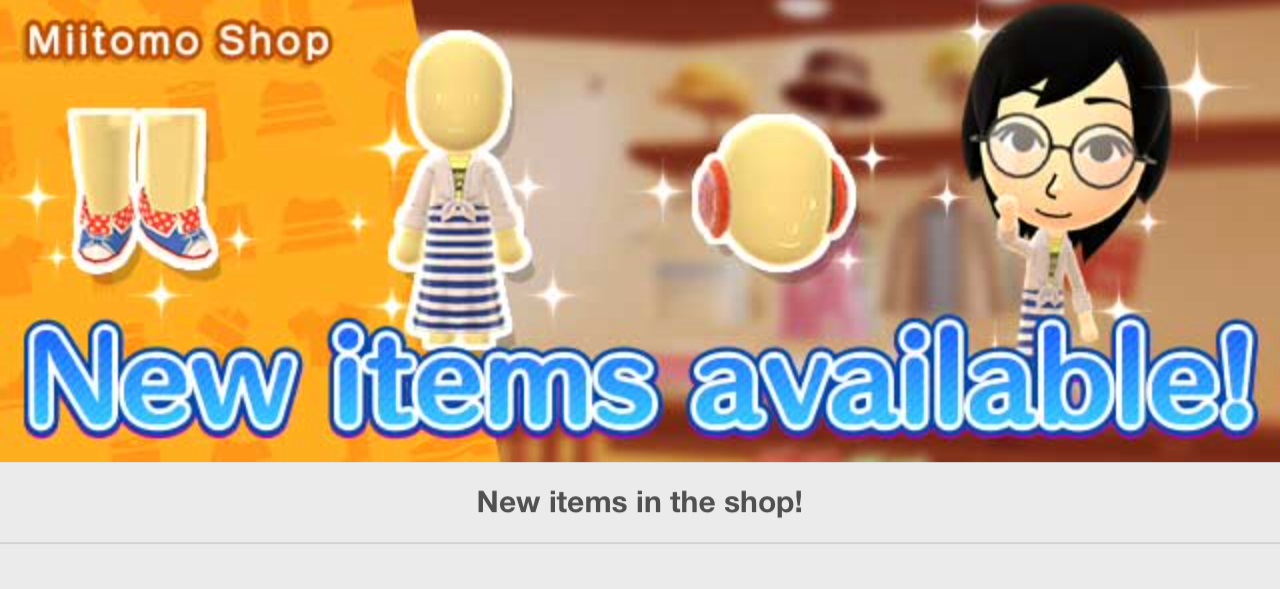 A number of new items have been added to Miitomo. Among the selection you’ll find in the app, the following are now available: