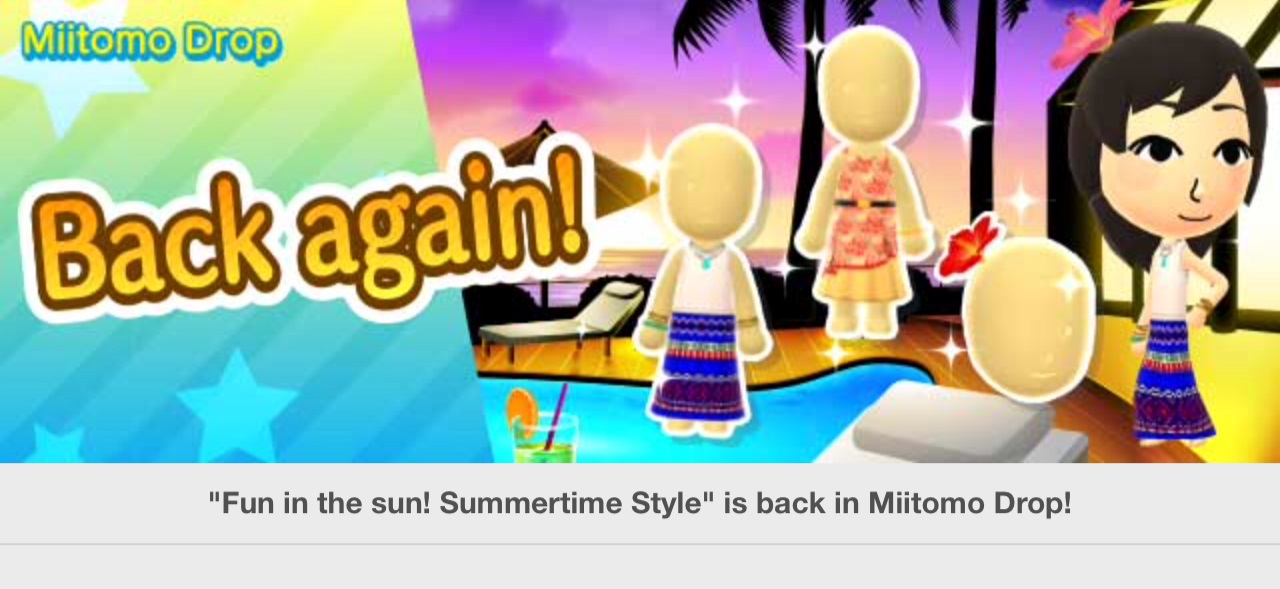 Miitomo – returning Miitomo Drop stage theme and new items (7/27/17)