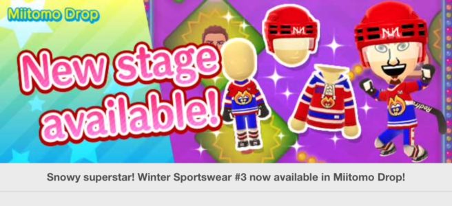 Miitomo has been updated with new content. Players can nab the latest items in the Miitomo Drop stage, “Snowy superstar! Winter Sportswear #3”.