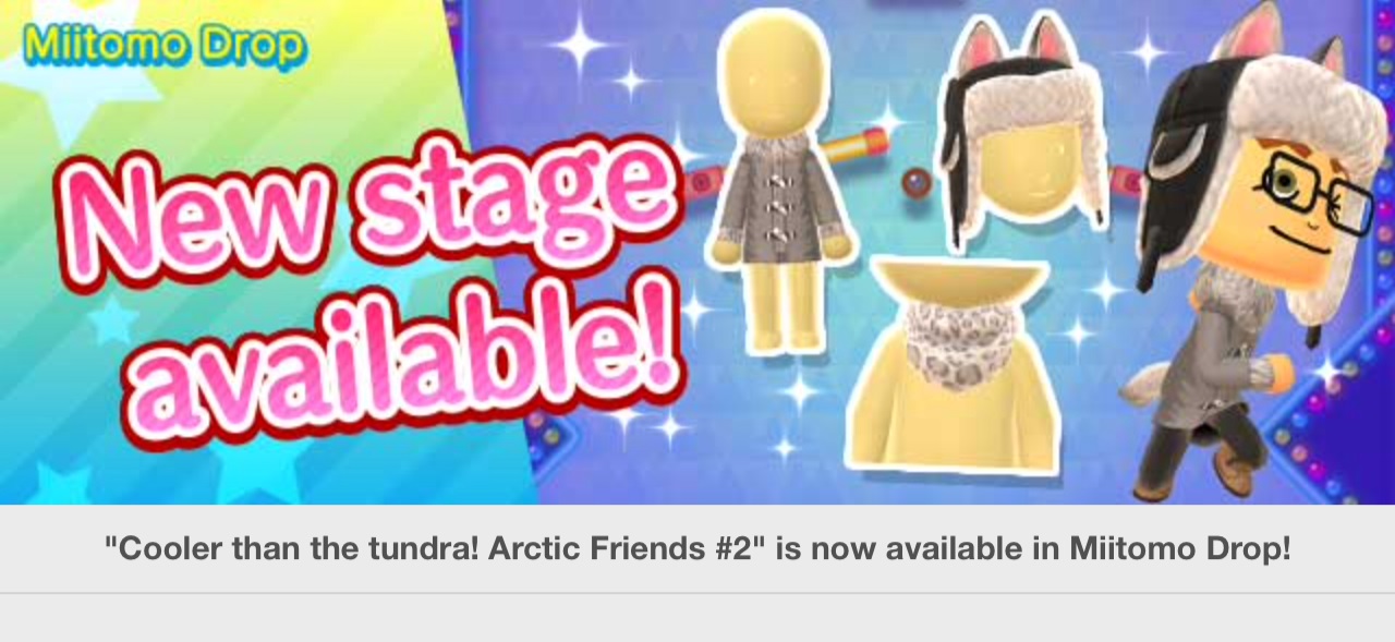 Miitomo has been updated with new content. Players can nab the latest items in the Miitomo Drop stage, “Cooler than the tundra! Arctic Friends #2”.