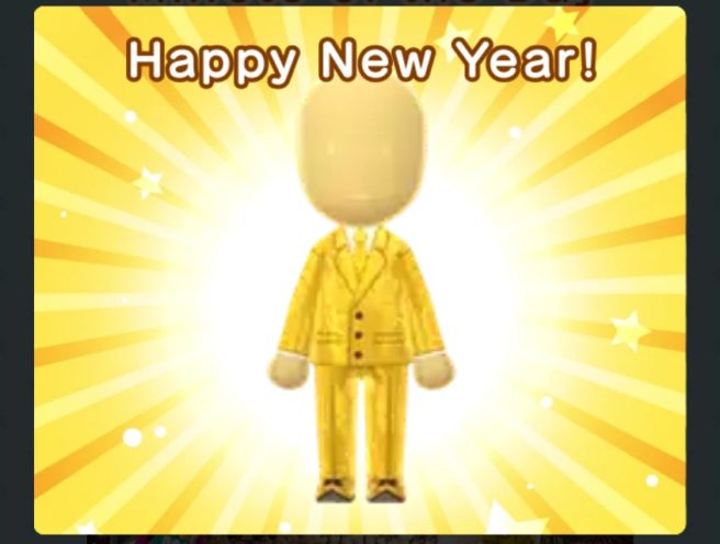 One of the final aspects of Miitomo’s New Year event is now live. As soon as you boot up Miitomo, you should be greeted with a notice about a free Golden suit. It can be claimed until January 5 at 11:59 PM.