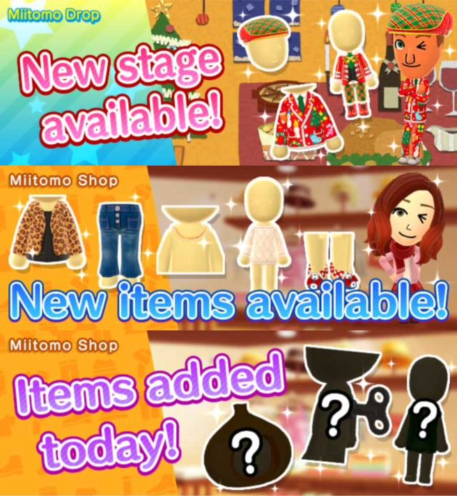 Miitomo – new Miitomo Drop stage, items, daily items (12/15/16)