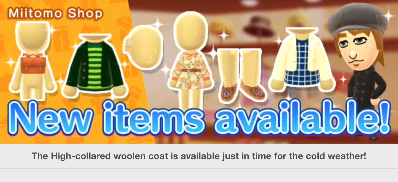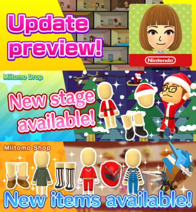 In other news, Miitomo has been updated with new content. Players can nab the latest items in the Miitomo Drop stage, “‘Tis the season! Happy Holidays #1”.