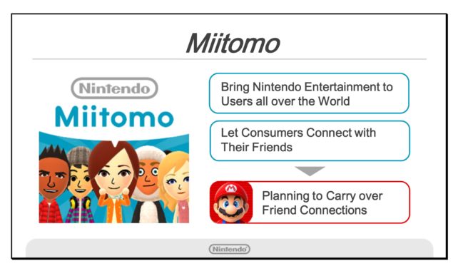 As our initial foray into the smart device business, Miitomo has focused on bringing Nintendo’s entertainment to as many people as possible across the world. Another main goal of Miitomo has been to let consumers connect with their friends. We are making preparations to allow friend relationships from Miitomo to be carried over to Super Mario Run. Since Super Mario Run has a mode where you can compete with other players, this means that active communication with your family and friends in Miitomo will lead to even more fun moments in Super Mario Run.