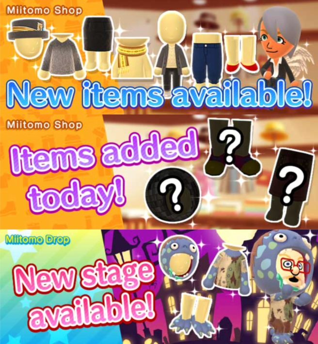 Miitomo – new Miitomo Drop stage, items, daily items (10/13/16)
