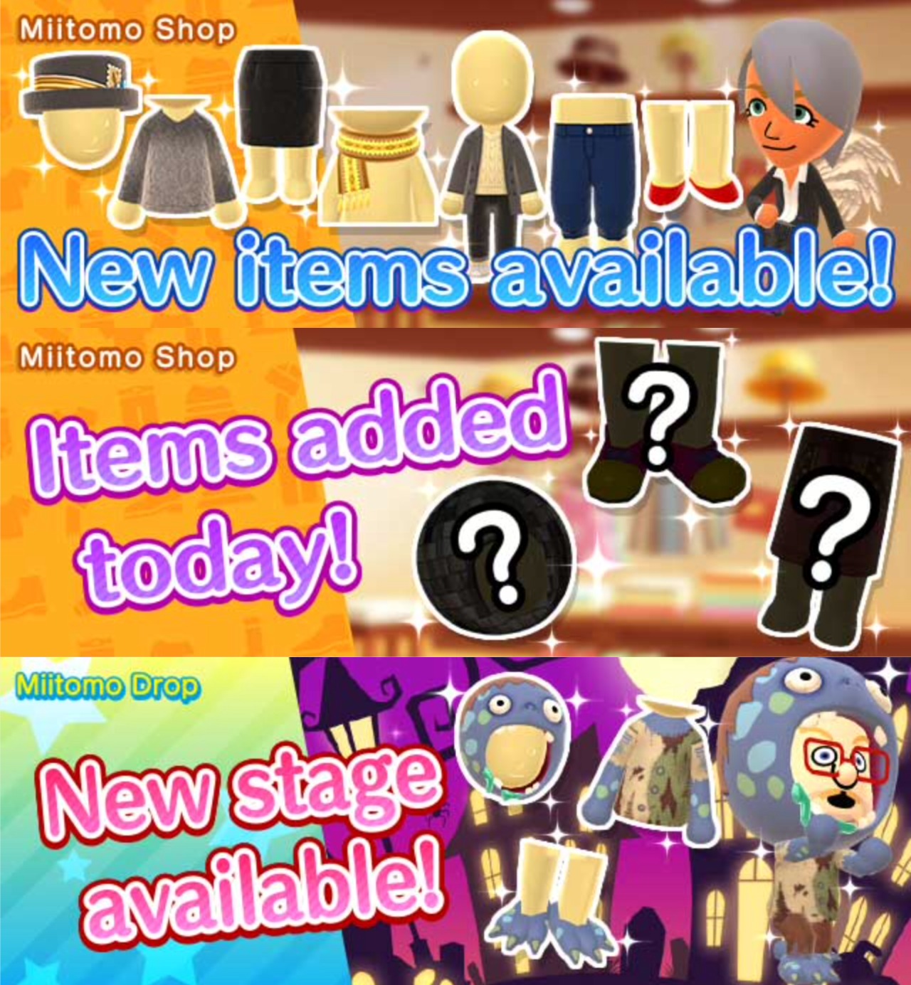 Miitomo – new Miitomo Drop stage and items (10/6/16)