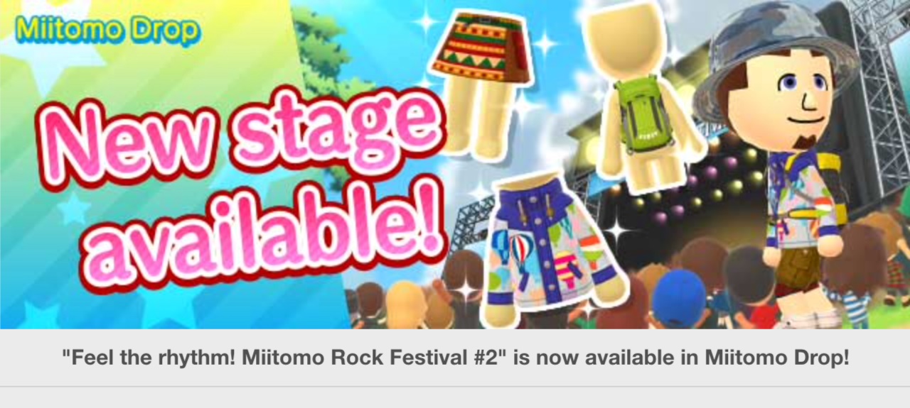 Miitomo has been updated with new content once again. Players can nab some new items in the latest Miitomo Drop stage, “Feel the rhythm! Miitomo Rock Festival #2”.