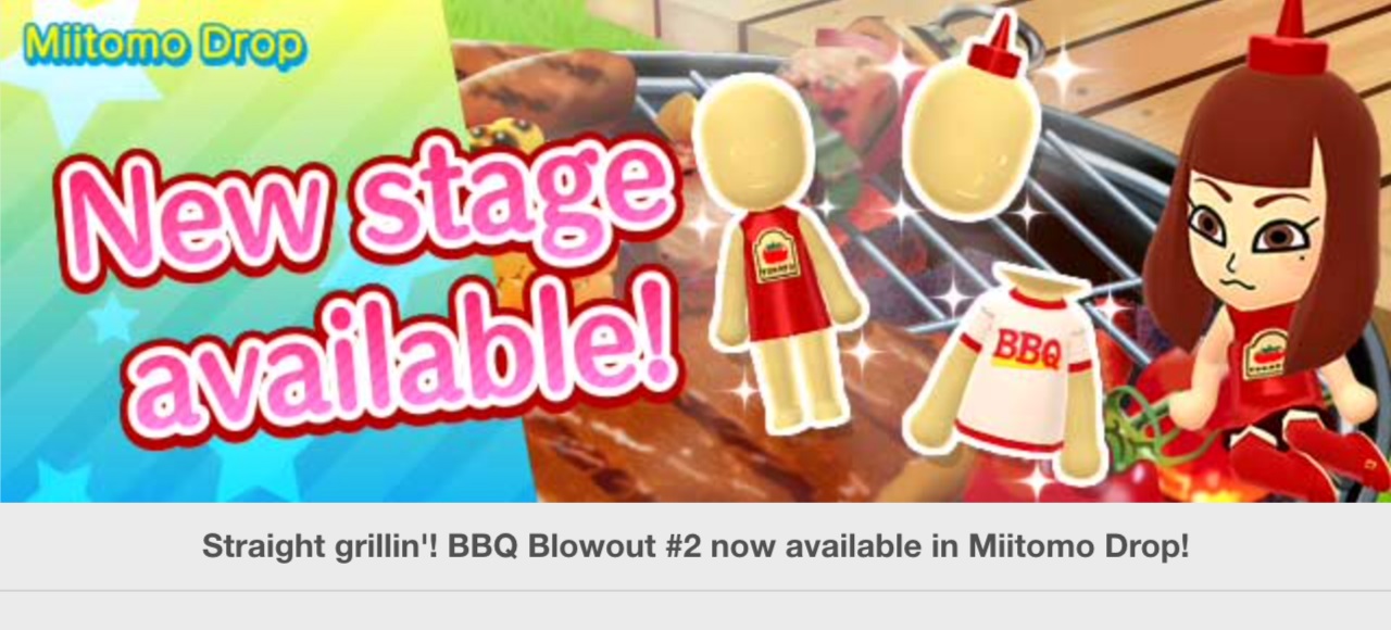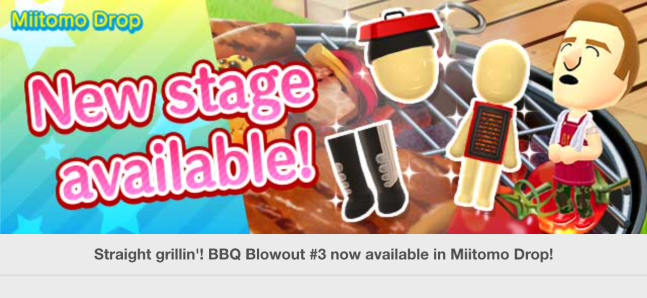 Miitomo has been updated with new content once again. Players can nab some new items in the latest Miitomo Drop stage, “Straight grillin’! BBQ Blowout #3”.
