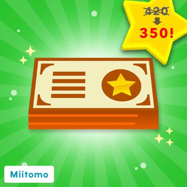 Over on My Nintendo, the pack of five Miitomo game tickets has been discounted. It’s been reduced from 420 Platinum / Miitomo points to 350.