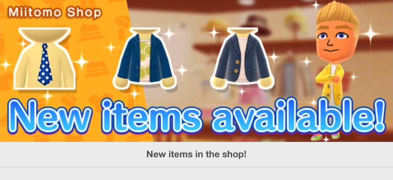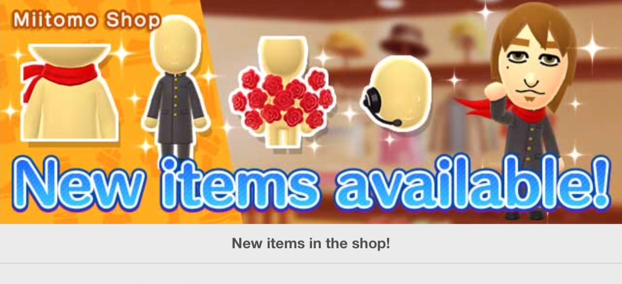 A number of new items have been added to Miitomo. Among the selection you’ll find in the app, the following are now available: