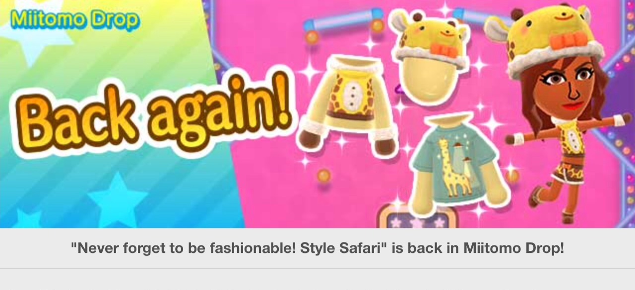 Miitomo – returning Miitomo Drop stage theme and new items (11/23/17)