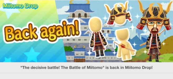 “The decisive battle! The Battle of Miitomo” is the returning theme. The stages provide the following: